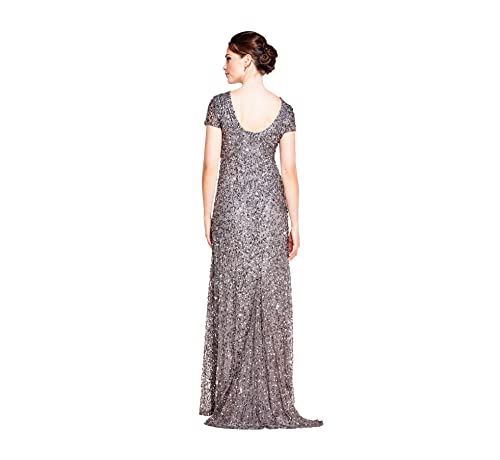This gorgeous sequin gown is filled with fabulous features, including short sleeves, a long, flowing soft skirt, a crew neck and a scoop back with a subtle back zipper closure
