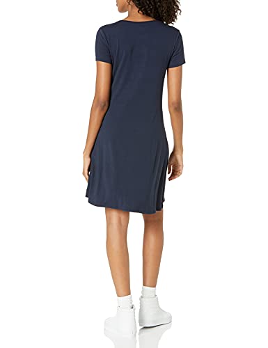 This versatile short-sleeve swing dress features a scoop-neckline and a feminine drape for easy, everyday styling