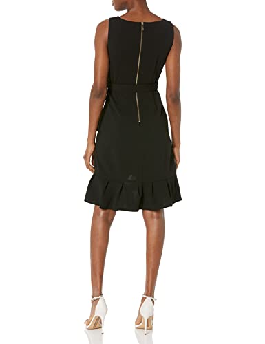 Live in style: This dress features a fitted above-the-knee style, side-tie belt and exposed zipper closure in the back; sleeveless design allows for versatile styling options